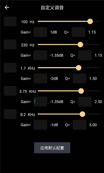 首先进入到Alice的数字化均衡器,你会得到五个可供自行设定的任意频段。