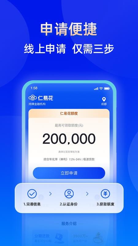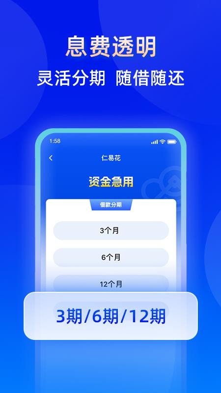 仁易花APP是一款能帮助用户高效解决经济难题的正规借贷平台,旨在提供更加智能、便捷且安全的借贷服务,随时都能在应用中凭借自己的信息资料申请,并能获得超高借款额度,高效解决生活难题,缓解自己的经济问题;同时可以享受超低的息费和超长的借款期数,缓解每期还款气压,避免逾期影响征信,满足用户的个性化学习要求;并且可实时守护用户的借款安全,不会获取和泄露任何数据信息,保障借款无忧;简单易用的掌上借款软件,是每个有经济困难用户的最佳选择,有需求的伙伴快来本站下载仁易花官方版使用吧,助你借款无忧!