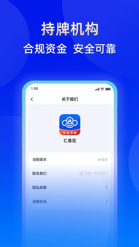 仁易花是盘锦市兴隆台区天利小额贷款有限公司推出的纯线上、无抵押信用贷款软件。为用户提供安全、方便、智能贷款;贷款有风险,借款需谨慎;请根据个人能力合理贷款,理性消费,避免逾期。贷款额度、放款时间以实际审批结果为准。