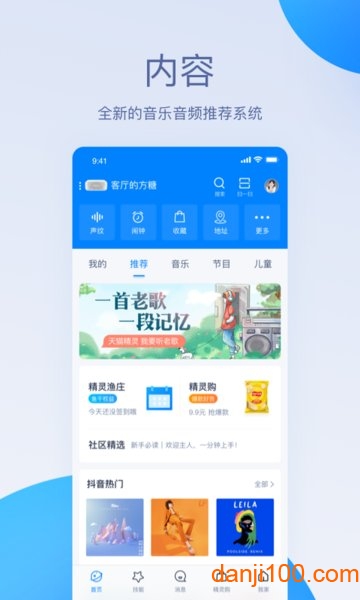 它由阿里巴巴出品的,管理自家的智能硬件的app,可以方便用户查询时间、播放音乐、设置闹钟等生活琐事,当然,在后续会加入控制更多智能硬件的能力。
