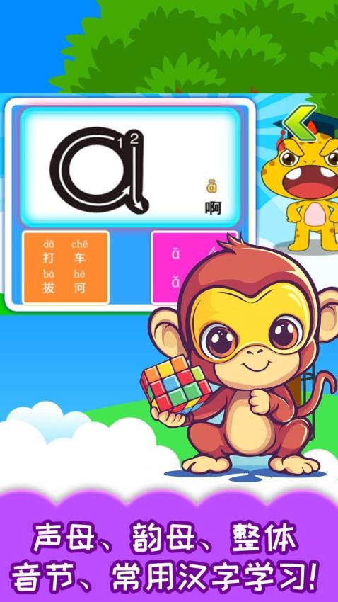 拼音是儿童学习汉字发音的基础启蒙,是一门必修课,宝宝学拼音汉字益智融合了拼音笔顺、词组发音、声调,声母,韵母,整体认读音节和拼音字母表知识,和四声调卡通插图以及朗朗上口的顺口溜,以开发智力发散形记忆方式听故事,玩动物园经营体验,让幼儿园宝宝更快的掌握标准的小学语文汉语拼音字母发音早教图卡。小孩掌握了拼音技能后宝宝就能自己学习唐诗国语诗词童谣,写字,识字,认字,看动物乐园故事书儿歌,本软件包含所有的学前汉语拼音学习和益智思维训练,适用于学前幼儿园和一年级,二年级小学的小朋友学习。