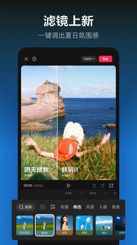 专业风格滤镜,一键轻松美颜,让生活一秒变大片。