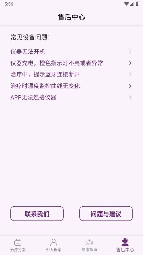 为用户提供了设备的专属售后中心,对相关的常见问题可以随时查看,轻松掌握相关的售后服务。