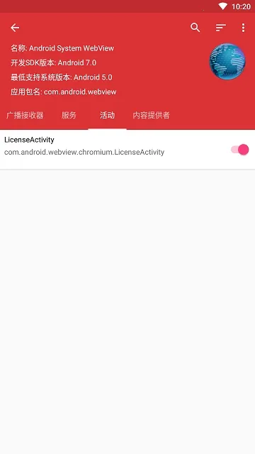 4、在这里你可以查看到应用程序的基本信息,广播接收器、服务、活动等,把跟广告相关的按钮都全部关闭掉。