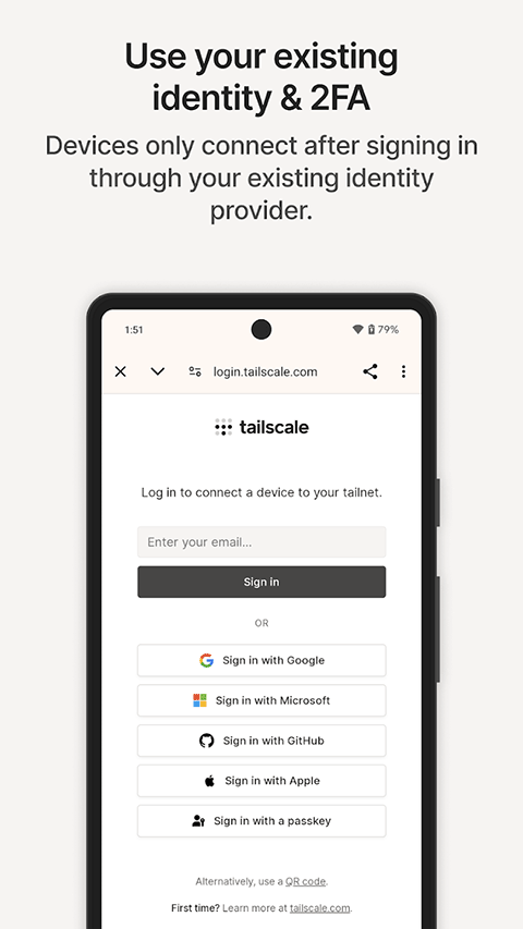 构建在快速、安全的 WireGuard 协议之上,确保您 Android 设备与其他 Tailnet 设备之间的所有通信都是端到端加密的。