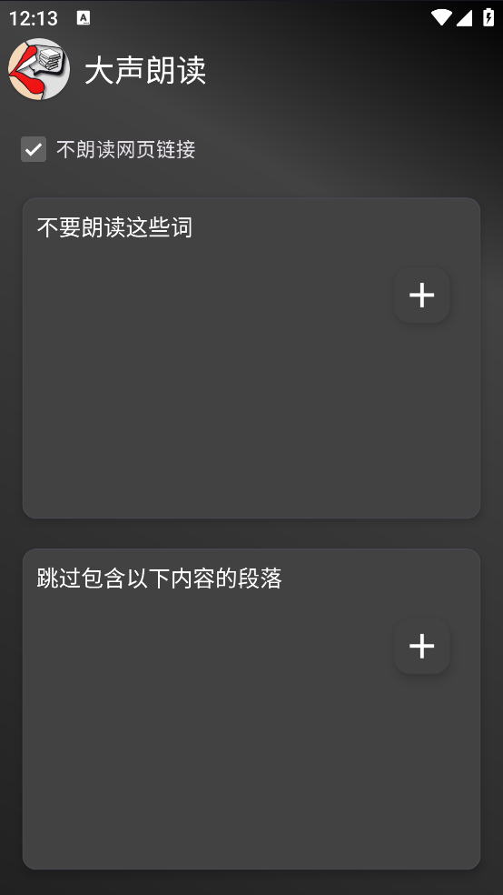 大声朗读Read Aloud是可以帮助用户实现手机文件或者是手机链接里的内容可以进行很好的朗读的软件,软件中的功能都很简单,并且在这款软件里你还可以看到很多简单的功能让你可以轻松使用相关的功能,还可以设置禁读词,这样就不会读出来了。