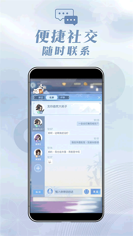 下线也不必说再见!登录即可与江湖好友、帮会成员聊天互动!还能发送和查看朋友圈、在世界频道喊话,随时关注世界大事,江湖风云缺你不可。