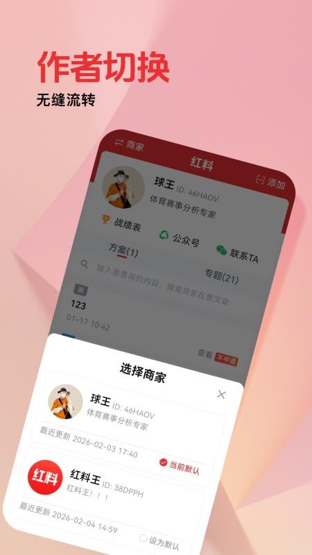 红料app是一款专注于体育赛事分析的专业知识付费软件,软件中提供有付费内容和免费内容可以在线查看,价格实惠,可以轻松购买你想看的各种体育赛事分析方案内容在线查看,让用户可以获取体育赛事的专业分析方案,协助用户更好的投注体育队伍,支持用户申请成为平台的赛事专家作者,可通过分享体育赛事分析赚取专业知识资产收益,将专业知识变现,可助力用户增加收入,将用户的收益明细清晰记录管理,以便用户随时查看了解自己的账户收益情况,并支持用户随时提现知识变现赚取的收益,有需要的用户就快来下载红料官网版使用吧!