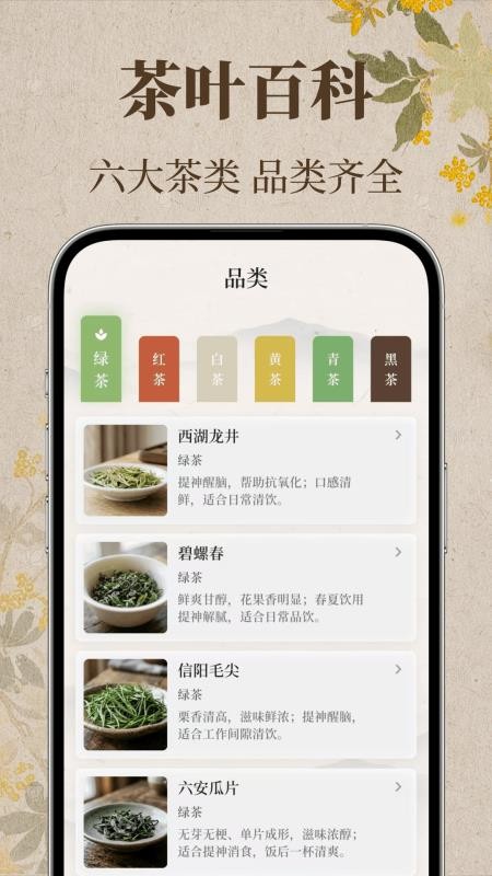 4、让你能够知道茶叶的各种类别以及饮茶方式等;