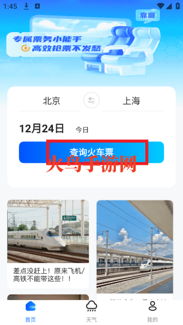 123火车订票助手软件使用一款可以帮助用户在这里可以查询高铁余票情况的软件,这款软件不具备购买以及订票功能,只有查询功能,如果用户想要知道出门那天的天气情况以及相关高铁车次有没有余票都可以通过这款软件进行查询,同时还有很多科普文章。