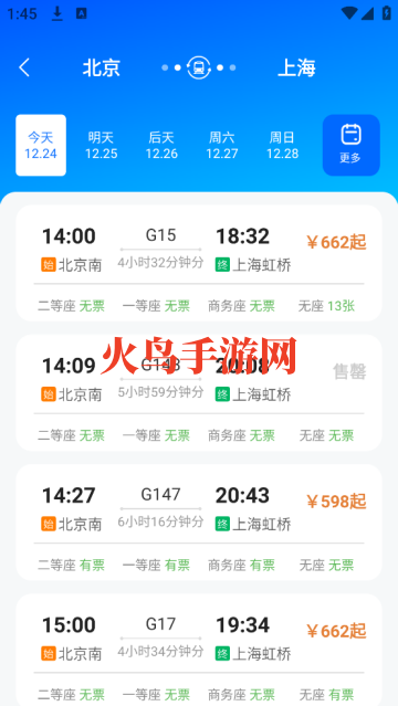 3、轻松查询高铁车次、出发和到达时间,以及票价信息。