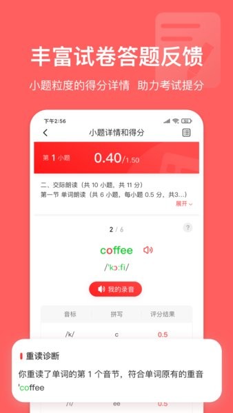 10+维度全方位、最细粒度(音素)精准定位英语发音问题;