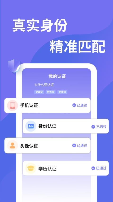 全部用户身份证实名+真人认证审核,学历/职业/收入等资料详细又靠谱;