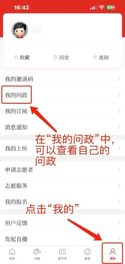 点击“我的”,在“我的问政”中可以查看自己的问政内容