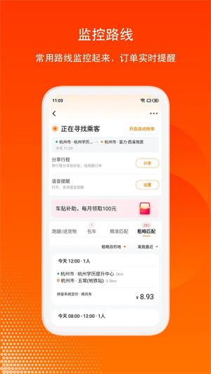 嘀嗒顺风车司机端app拥有附件订单、匹配订单、监控订单、语音提醒等功能,给车主带来更多的便利,让接单变得更安全、更方便。