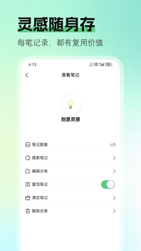 重要的笔记可以将其置顶,以便随时都能在应用中找到并查看,节约时间;