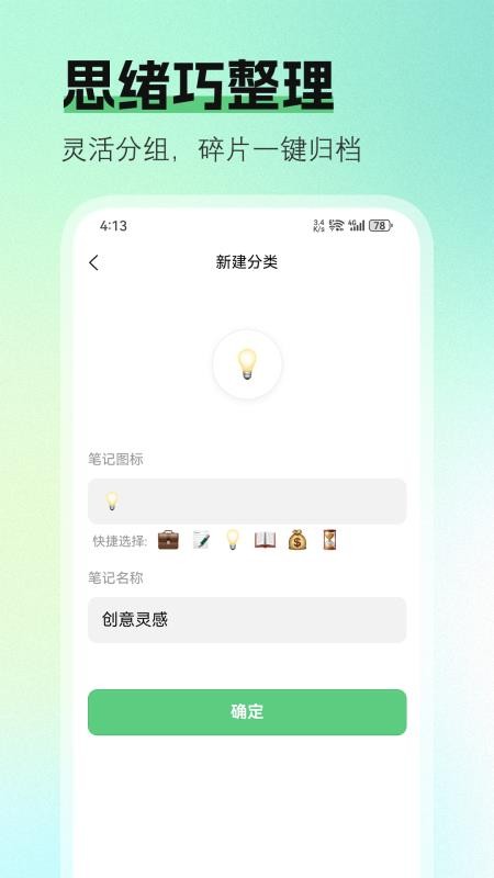 支持用户自定义新建分类,可自由设置图标和标题,方便用户日常高效区分;