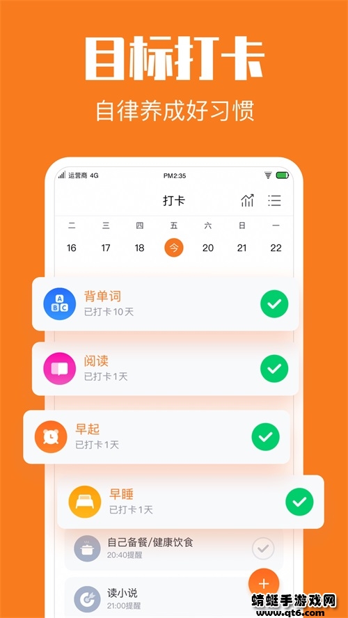 2.帮助用户养成各种习惯,让自己的拖延症慢慢消失,做好每天的规划。