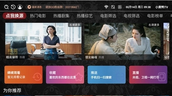 1、打开小黄鸭TV之后,我们可以看到下图所示的内容。