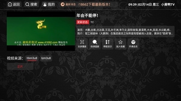 5、同时小黄鸭TV还可以接受全屏追剧模式,只不过这些节目是需要会员资格的。