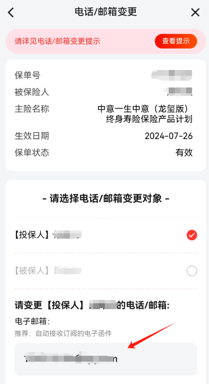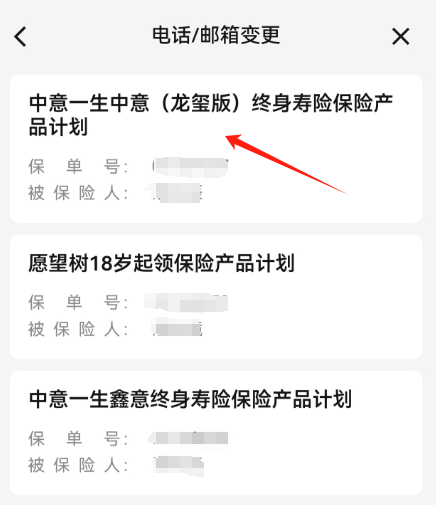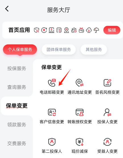 选择保单变更中的电话邮箱变更...