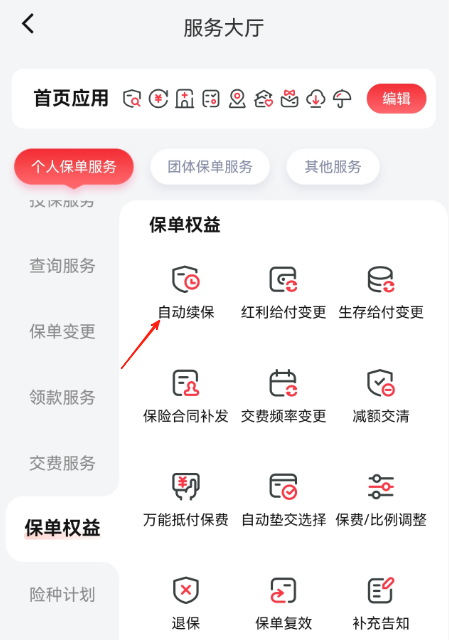 选择保单权益中的自动续保...