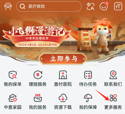 打开掌上中意app,选择更多服务...