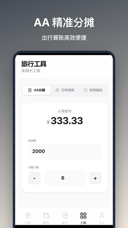 为用户提供了相关的旅行工具,随时进行分摊计算和行李清单的制定,规划时间。