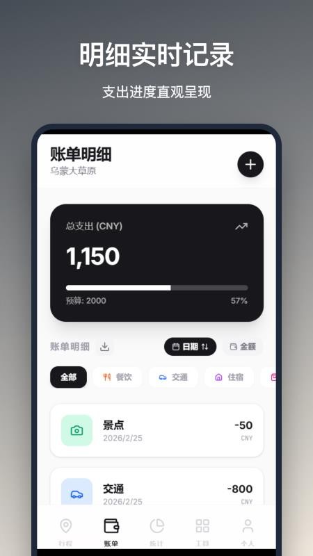 也可以让你随时进行旅行记账,可以对出行旅行账单记录下来,随心实现旅行记账。