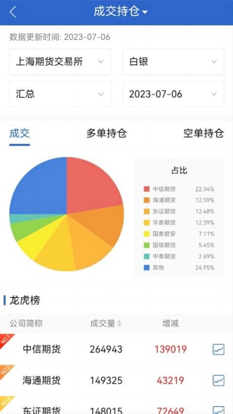 恒力期货官网版是一款非常优质的期货交易类软件。这款软件为期货投资者们提供了一个很好的期货线上交易平台,平台支持贵金属、白银、期权等多样品种的期货交易,可以满足很多期货投资者的交易需求;而且还提供了掌上营业厅,用户可以直接在平台上进行很多的基础业务办理,非常的方便。不仅如此,恒力期货app里面还为用户们提供了很多期货的最新资讯、交易行情数据等,方便用户了解各样期货详情,发现投资时机,从而赚取更多的期货投资收益。有需要的用户赶紧在本站下载这款软件体验吧!