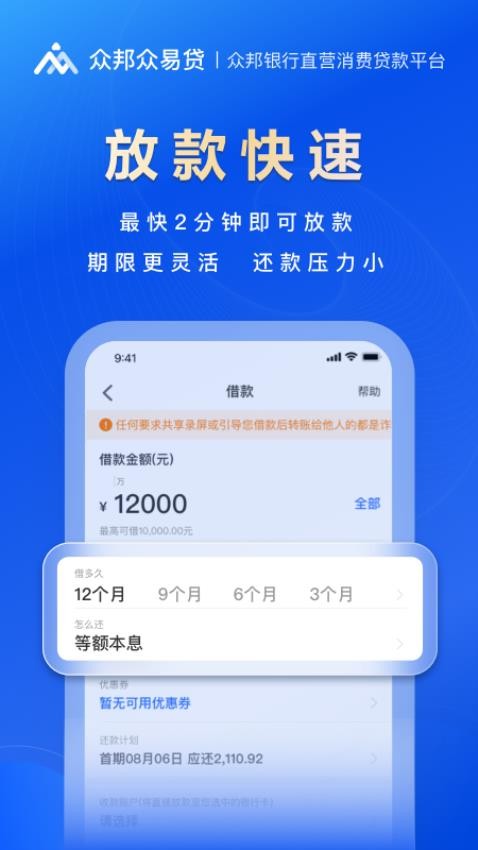 众邦银行直营贷款平台为您推出的官方产品,官方产品让你借款更放心。
