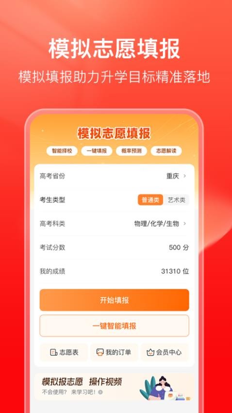 在应用中就能实现志愿填报,模拟填报流程,便于用户掌握填报技巧并分析;
