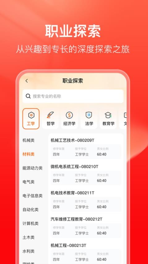 在线即可探索诸多职业,了解不同职业学年和男女学习比例,方便根据情况分析;