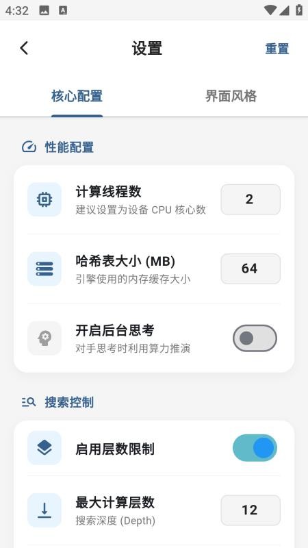 2、根据自己的象棋水平选择对应的人机难度;