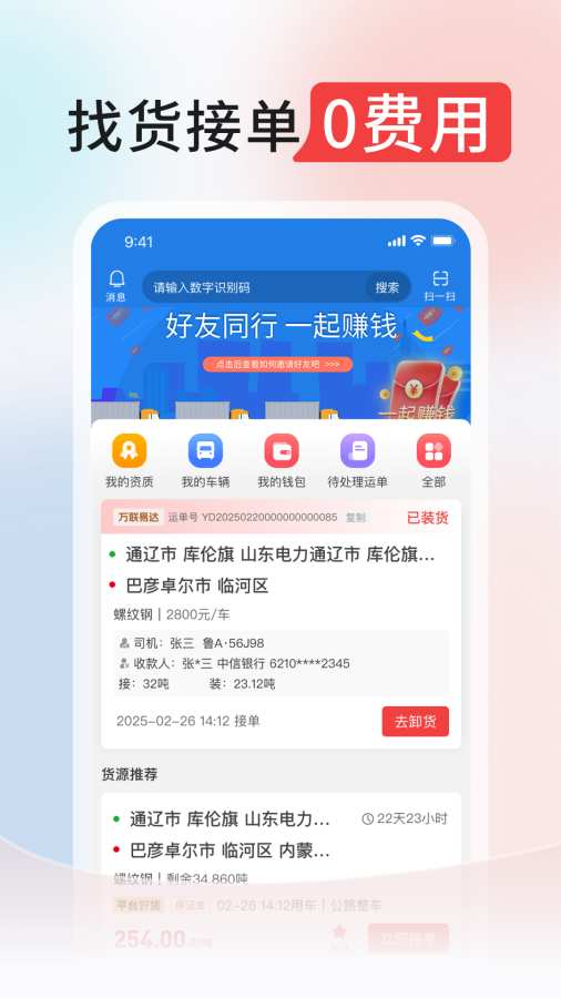万联通司机端最新版是一款免费货运服务平台,通过数字化手段为司机搭建高效、便捷的货运交易与服务桥梁,覆盖大宗商贸、整车物流、多式联运全链条多场景,系统会综合分析司机常跑路线、车型载重、历史订单等数据,实时推送高匹配度货源。