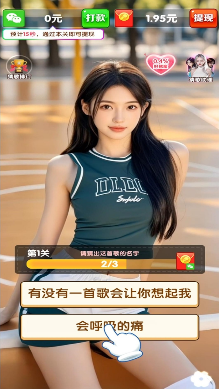 3、非常有意思的答题闯关游戏,需要我们去听各种好听的歌曲,然后猜中歌名,这样就能过关获得奖励了。