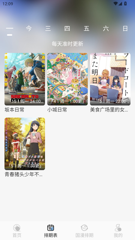 4.点击下方的排期表,即可看到每天准时更新的动漫资源了。