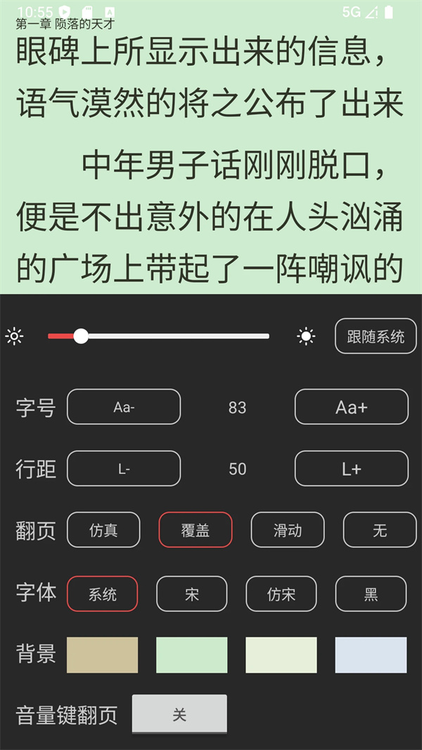 护眼阅读,高度自定义:提供多种主题(日间/夜间/护眼棕)、字体、字号、间距调整、音量翻页,一切只为您看得更舒服。
