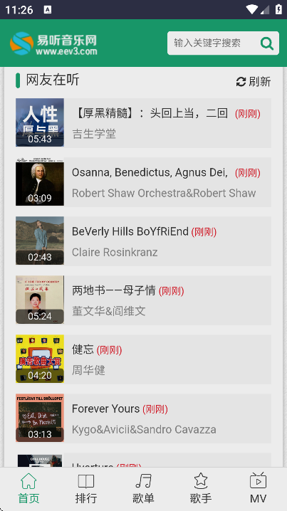 易听音乐网是一款拥有丰富免费音乐资源的音乐播放软件。在这里能了解当下热门歌曲,探索各类风格音乐,发现不少新歌。还能与音乐爱好者交流分享,增添乐趣。可将喜欢的歌曲下载离线听。使用时,能在搜索栏搜歌,根据在听列表和好歌排行挑选。软件展示众多歌手作品,介绍歌曲详情,有多种音乐风格分类。具备热门歌手展示、歌曲介绍、音乐风格分类、播放、下载等功能。特色是音乐资源丰富,风格歌手多样,网友在听板块独特,方便交流互动发现新音乐。