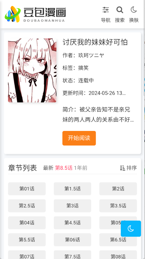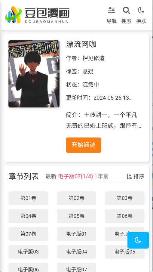 4、用户点看的漫画以后进入详情页,点击开始阅读。