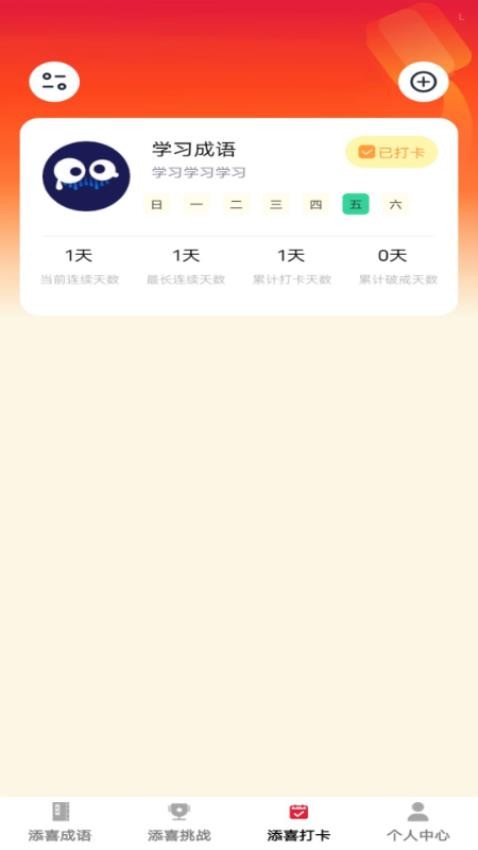 5、进行成语学习打卡,记录自己每次学习的信息,便于知道总学习天数;