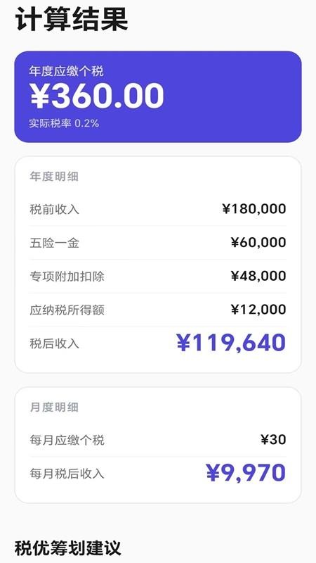 软件提供了精准可靠的计算结果,实时更新的税率表都可查看,对其精准计算。