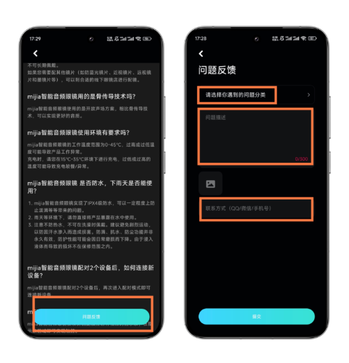 大家在使用MIJIA智能音频眼镜过程中遇到软件问题,可以在“米家眼镜”APP内提交反馈日志,以帮助工程师更好地定位问题,优化使用体验。