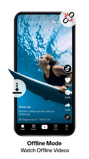 TikTok极速版最新版是一款好用的在线短视频播放软件,一款专为用户带来最简单的视频播放,轻巧的软件大小蕴含着无限的视频资源,在这里一站式发现更多的有趣视频。TikTok极速版国际版本有着好用的离线模式,用户可以在这里选择下载功能,离线缓存每一个视频,让用户可以在没有网络的情况下也能继续观看自己喜欢的视频,精彩内容不怕网络不在。