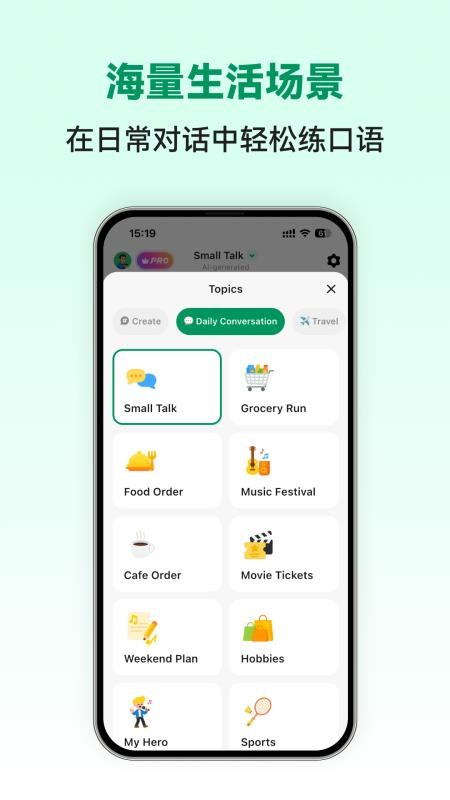 强大且智能的AI对话练习模式,在经验中就能和AI角色互动,便于提升口语;