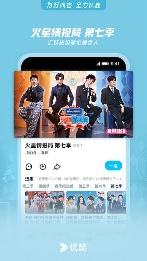 1、从上学时候就用优酷,很多年了,顺手。优酷的设计比较人性化,没有那些花哨的功能,也没有乱七八糟的插件和链接。很多片子也都能缓存,特别方便,每个种类都能找到喜欢的片子,新片更得也比较快。很少出现卡顿闪退等情况,服务也不错,加油吧。