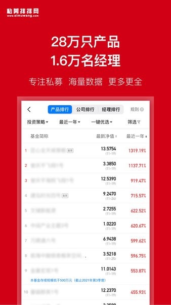 公司拥有国内全面的对冲基金数据库,目前已覆盖全国14万多只私募基金,2万多家私募基金公司以及近万位基金经理的详细信息。