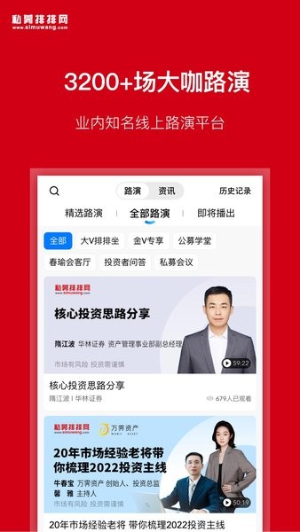 ●【路演直播】每日邀请私募投资大咖现场直播,全面剖析投资策略,想要了解私募走势,实时关注路演直播就没错;