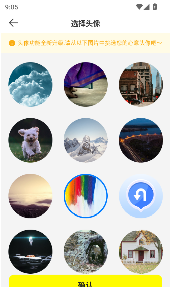 6、最后进入“选择头像”界面,挑选喜欢的头像后,在点击“确认”按钮就设置完成