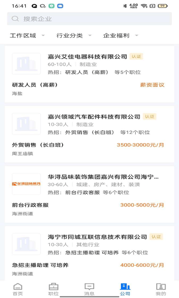 海宁招聘网最新版是一款专为海宁当地人倾情打造的在线求职app,平台里汇集了海量优质职位,满足用户多方面求职需求,支持线上直聊,省时又省力,既为企业招揽了人才也解决了就业问题!